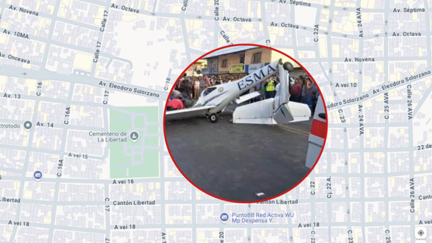 La tarde de este martes 26 de noviembre, se reportó la caída de una avioneta de la Escuela Superior Militar de Aviación (ESMA) sobre la Eleodoro Solorzano, vía principal del cantón La Libertad, provincia de Santa Elena.